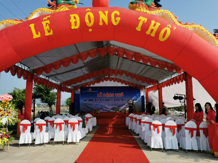 2019年11月15日,在越南寧平省家園縣家富工業區(L? CN10, C?m c?ng nghi?p Gia Phú, X? Gia Phú, Huy?nGia Vi?n, t?nh Ninh Bình, Vi?t Nam./Land No. CN10,Gia PhuIndustrial Park,Gia Vien County,Ninh Binh Province,Vietnam),萬輝涂料越南有限公司進行了動土儀式。