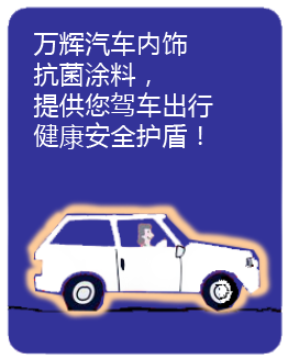 萬輝汽車內飾抗菌涂料產品使用新型納米抗菌劑,具有抑菌菌種范圍廣、抑菌效果明顯的特點;且涂層抗菌能力與涂層的生命周期等長,具有長效的抗菌能力,能夠有效的對抗多種微生物包括: