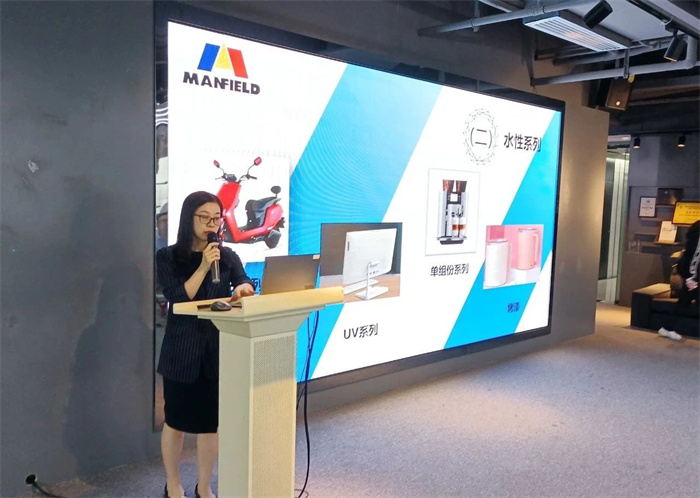 萬輝涂料市場(chǎng)部李紅梅女士結(jié)合云頂?shù)漠a(chǎn)品需求及環(huán)保理念,為到場(chǎng)嘉賓進(jìn)行了《萬輝水性涂料及特殊效果運(yùn)用》的主題演講。