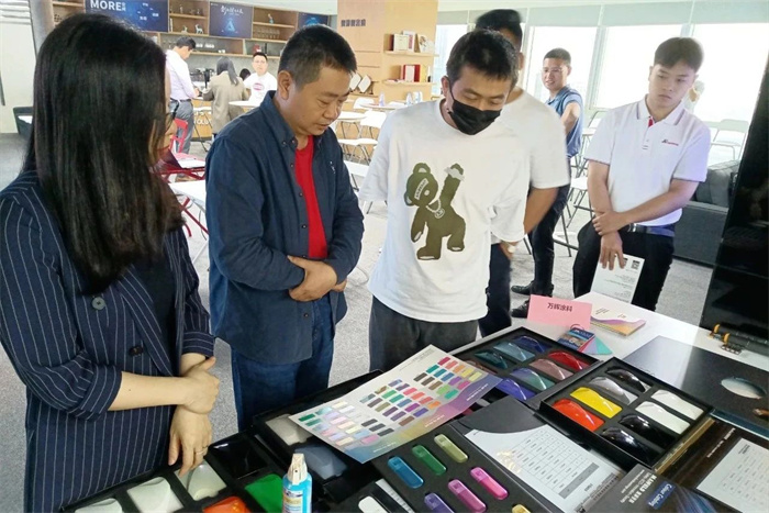會(huì)議上,針對(duì)感溫變色涂料和感光變色涂料在云頂Oclean智能牙刷主體/裝飾件的應(yīng)用需求,萬輝團(tuán)隊(duì)為客戶充分展示了萬輝強(qiáng)有力的涂料技術(shù)和產(chǎn)品實(shí)力,并為客戶現(xiàn)場(chǎng)一一答疑解惑并提供有效的解決方案。