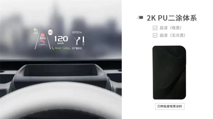 萬輝0.2°極度啞黑漆應用于汽車車載抬頭顯示系統、除霜格柵等內飾件,油漆光澤度基本接近0o,其漆膜表面光的反射率極低,能有效地解決普通涂料涂裝后所存在的炫光、反光等弊端,大大地提高了汽車內飾功能件使用的安全性。