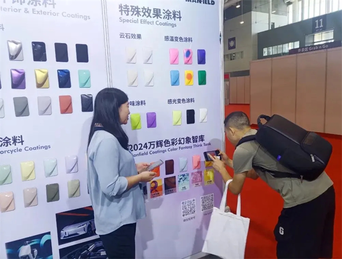 6月19-21日,2024國際新材料新工藝及色彩(簡稱CMF)展覽會暨外觀效果加工及應用展在深圳國際會展中心隆重舉行,萬輝涂料應邀參展了本次展會。